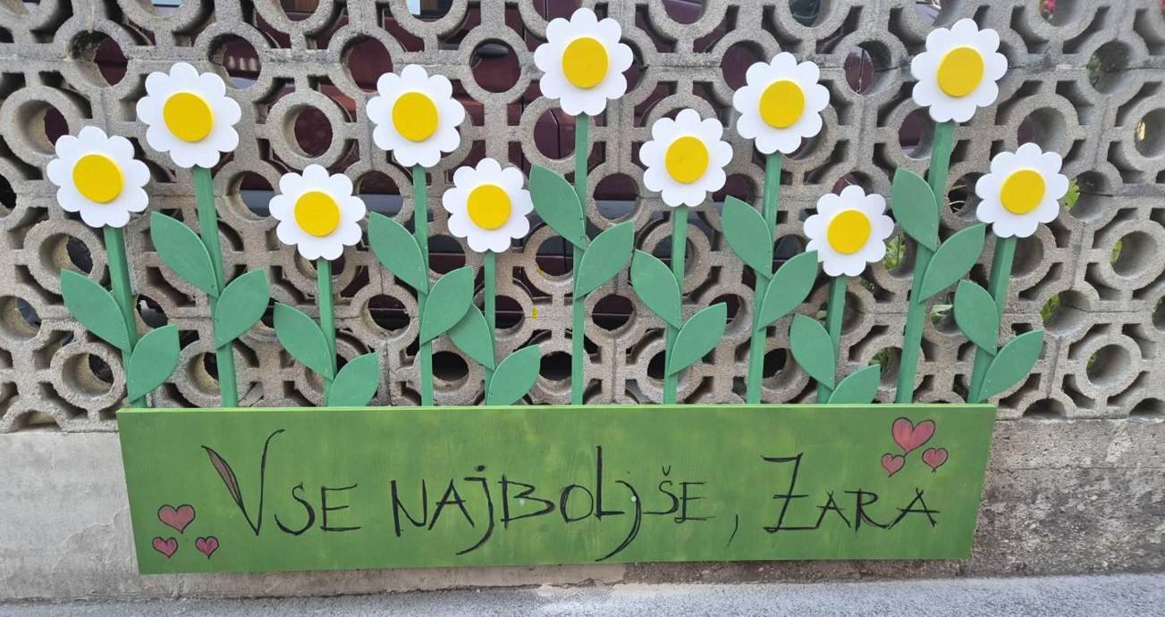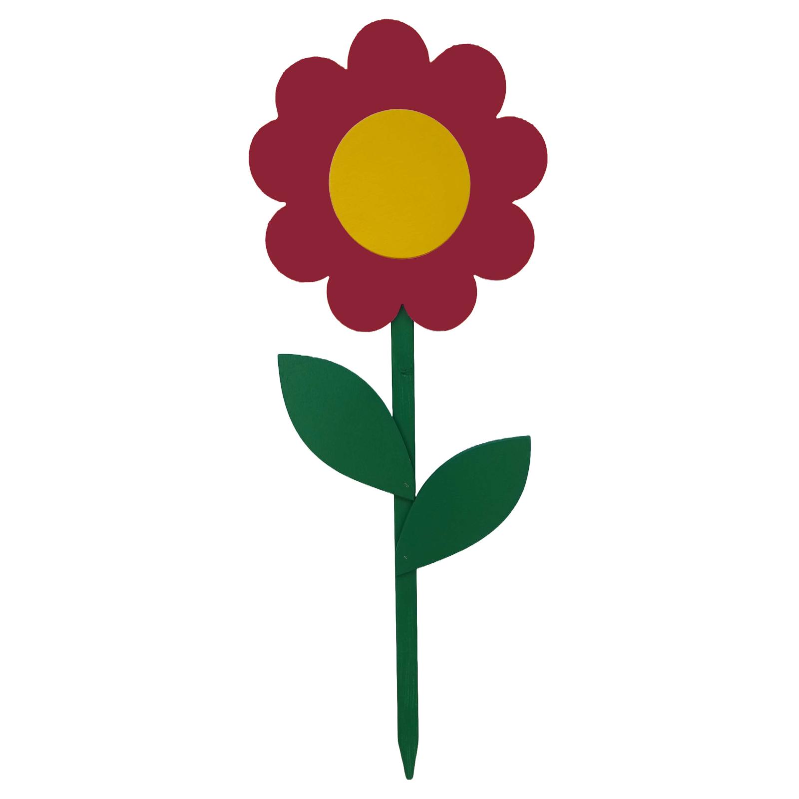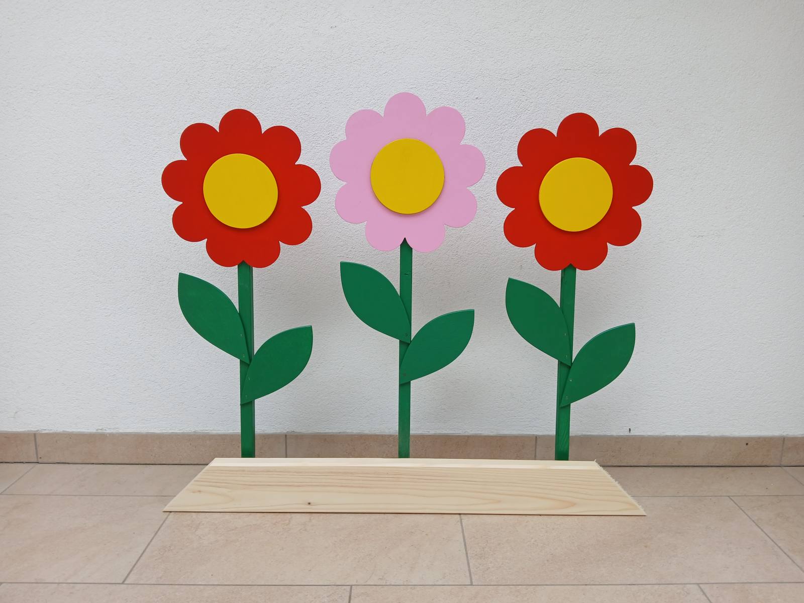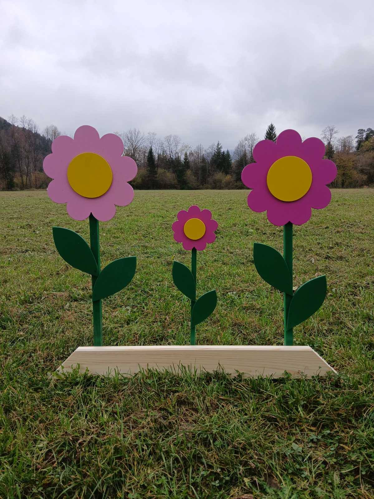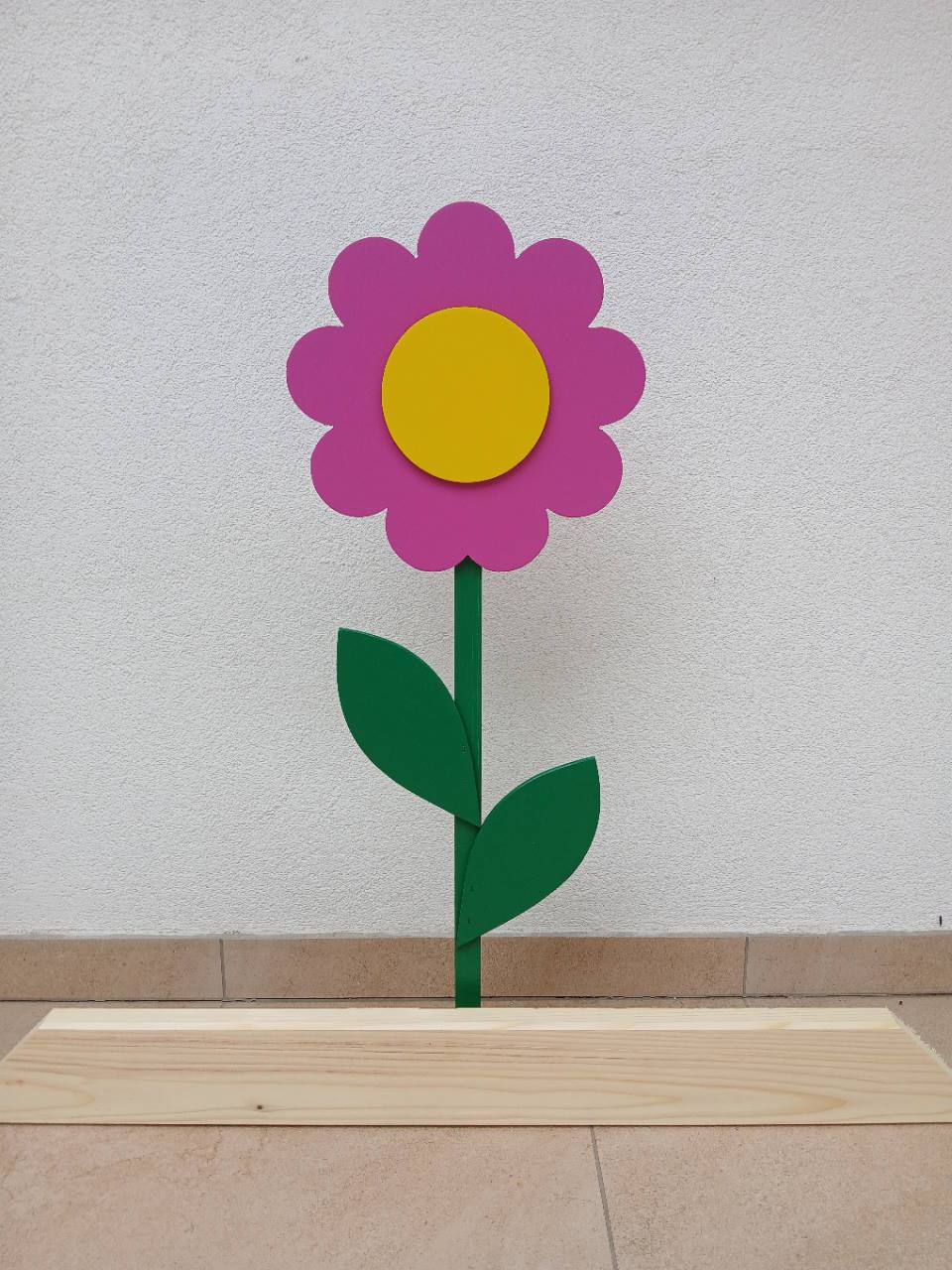 Marjetica s premerom cveta 30 cm, in skupno višino s steblom cca. 80 cm. Izdelana je iz brezove vezane plošče 6mm in pobarvana z barvami za zunanjo uporabo.