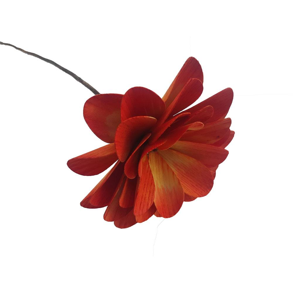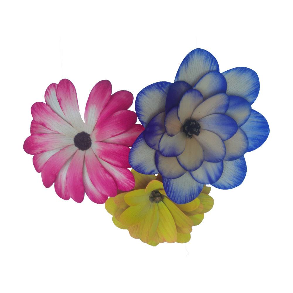 Leseno cvetje v različnih barvah in modelih je ročno delo in je lep okras vašemu domu. Širina cvetov je od 12 do 20 cm. Pritrjeni so na palice, ki  jih skrajšate na poljubno dolžino in zvežete v šopek. Lahko cvetove kombinirate v šopku s suhimi travami.
